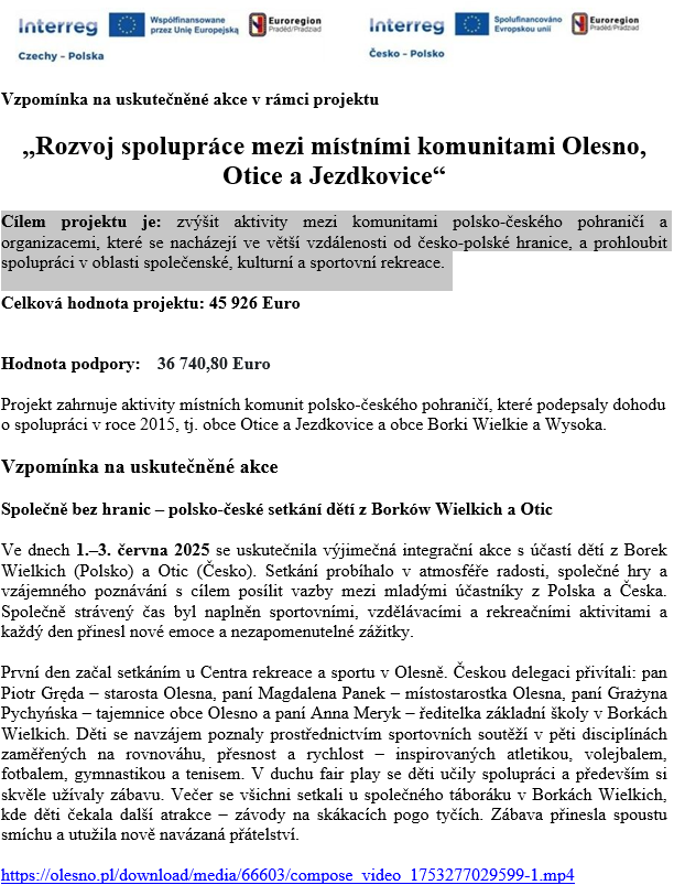 Rozvoj spolupráce mezi místními komunitami Olesno, Otice a Jezdkovice