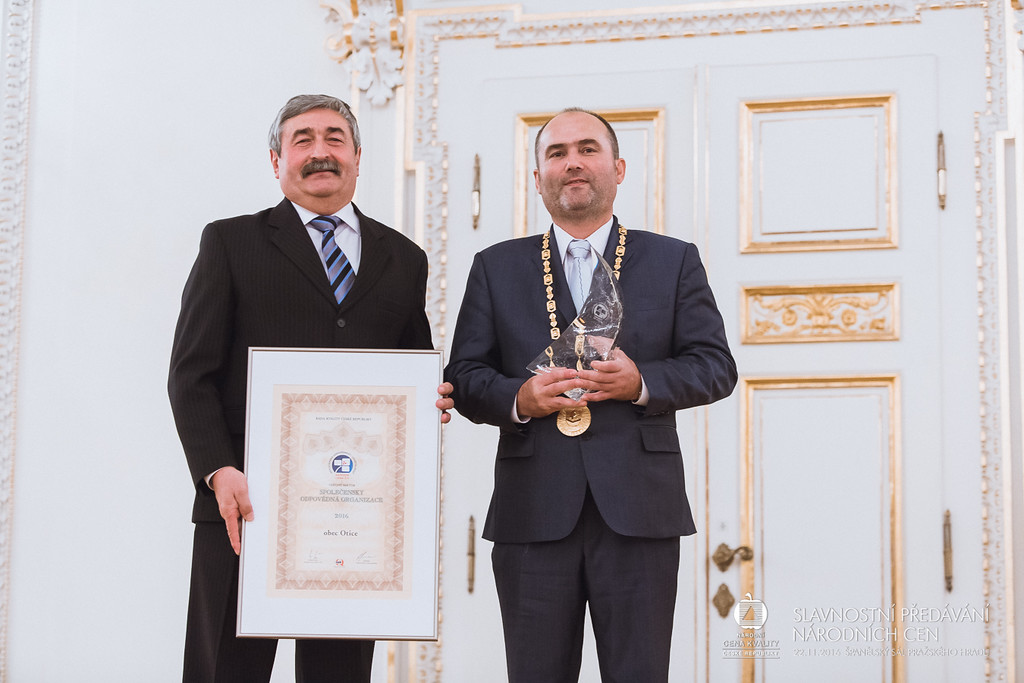 V uplynulých dnech jsme spolu s místostarostou převzali Národní cenu společenské odpovědnosti a trvalé udržitelnosti. Předávání ceny proběhlo ve Španělském sále Pražského hradu za účasti nejvyšších ústavních činitelů včetně prezidenta. Otice reprezentovaly náš kraj a region stejně úspěšně, jako v roce loňském Technické služby města Opavy.