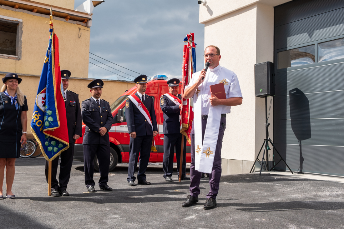 Žehnání nové hasičské zbrojnici v Oticích