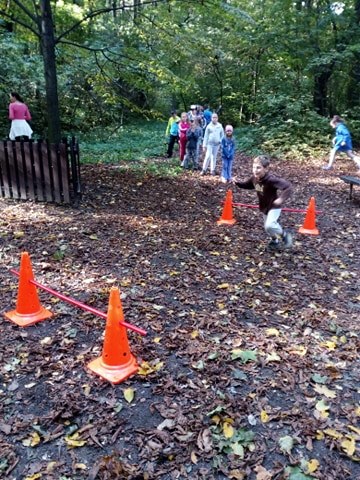 Počasí nám stále přeje, proto vyrážíme ven do přírody. Učíme se pohybovat v nerovném terénu, překonávat překážky a zkrátka běháme a soutěžíme na čerstvém vzduchu.