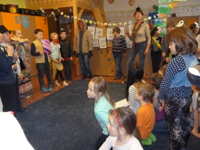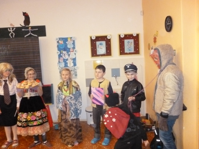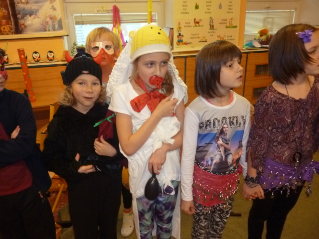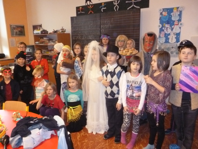 V pátek 27. 2. 2015 slavily děti šd II. a šd III. masopust. Přinesly si krásné masky. S nacvičeným programem, úvodním slovem, básničkami a písněmi o masopustu se představily dětem v šd III. a šd I. Společně jsme si zazpívali písně za klavírního doprovodu Radky Jedličkové z 5. třídy. Poté následovaly soutěže a taneční rej za hudebního doprovodu. Všem dětem byly rozdány koblihy.
