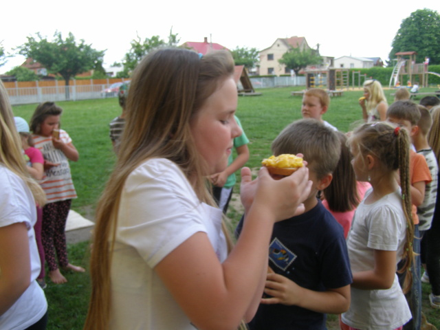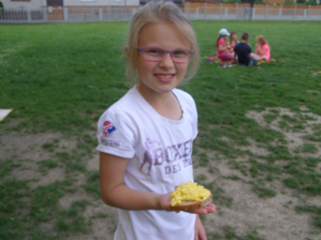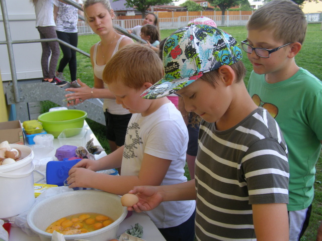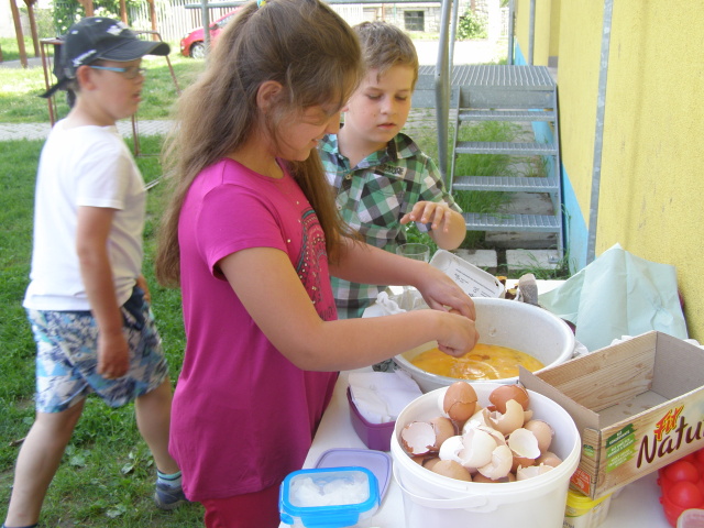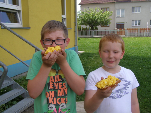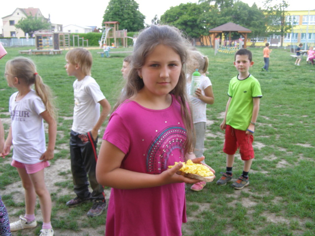 V úterý 31. 5. 2016 uspořádala školní družina na školním hřišti smažení vajec. Starší chlapci připravili stoly, děvčata smažila vejce. Počasí a nálada byla výborná. Smaženice všem chutnala.