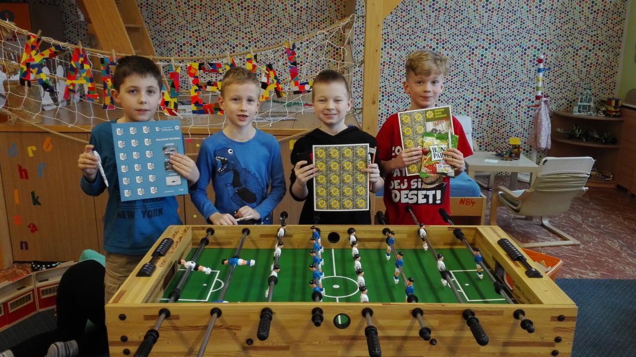 Vánoční dárek v podobně stolního fotbálku se ihned využil k turnaji. Do posledního kola postoupili čtyři hoši, na posledních třech místech se umístil Daniel z 2. třídy, Adam ze 4. třídy a první místo vybojoval žák druhé třídy Tadeáš. Klukům děkujeme za vyrovnaný a napínavý souboj 