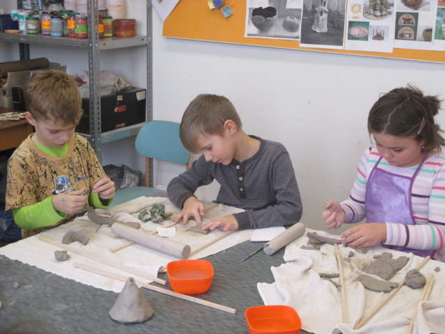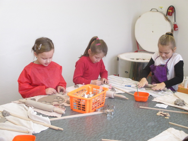 Pro velký zájem o práci v keramickém kroužku byly děti rozděleny do tří skupin. Kroužky probíhají vždy 1x za 2 týdny od 13 do 14.30 hodin.