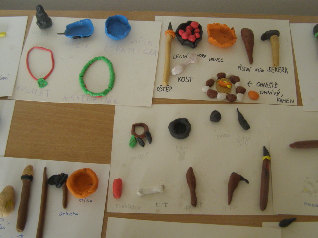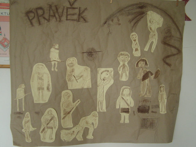 Pravěk - první učivo nového předmětu Vlastivěda. Děti se seznámily, jak v pravěku lidé vypadali, co si oblékali, jak a čím se živili, jaké nástroje používali.
