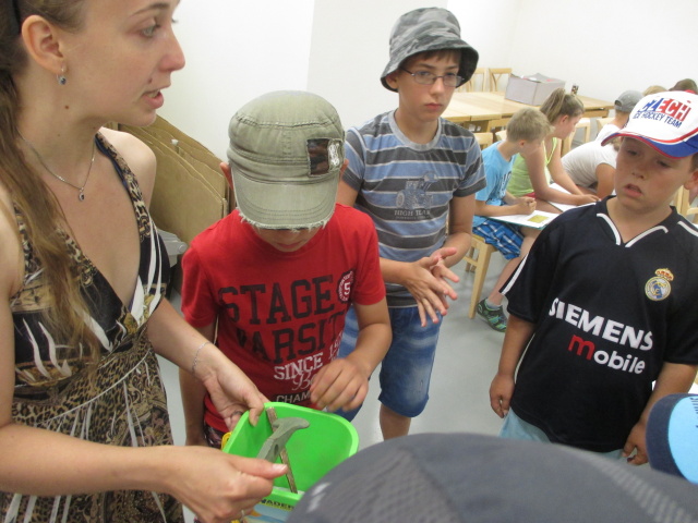 6. 7. 2015 - děti se dozvěděly podle hledaných pazourků, do které tlupy budou patřit. Pak jsme vyrazili pěšky do Opavy do Slezského zemského muzea. Tam nás čekal zajímavý interaktivní program o archeologii. Děti si roli archeologa vyzkoušely na vlastní kůži a hledaly předměty v písku. Následovala prohlídka stálé expozice.