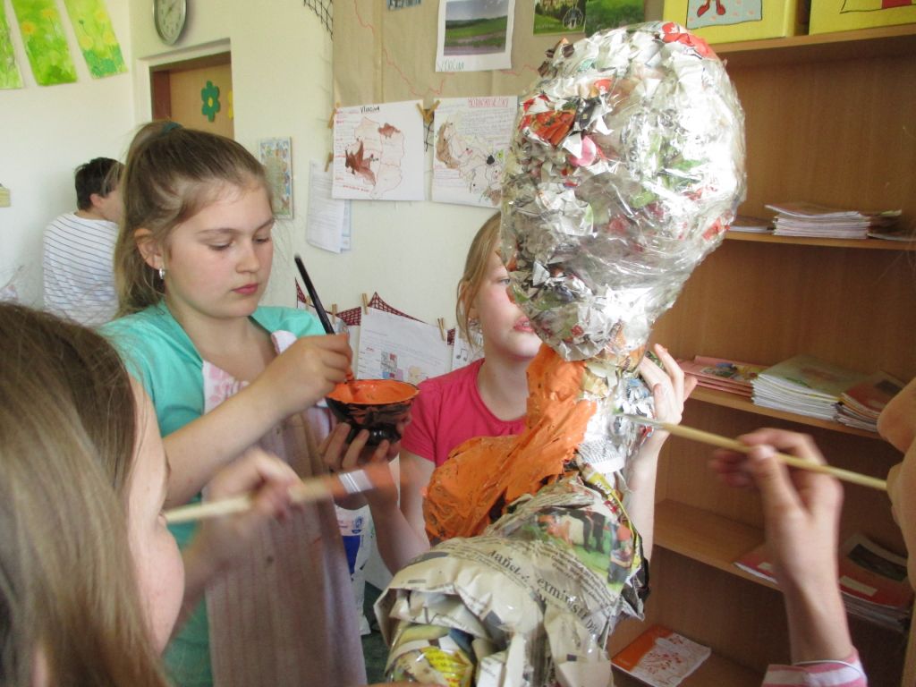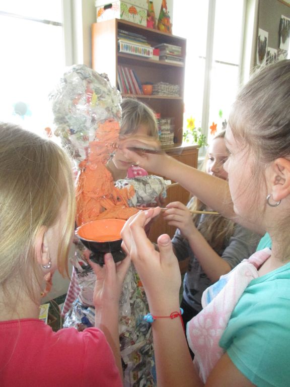 30. 4. - pálení čarodějnic. Páťačky vyrobily pro otické hasiče čarodějnici a moc se jim povedla.