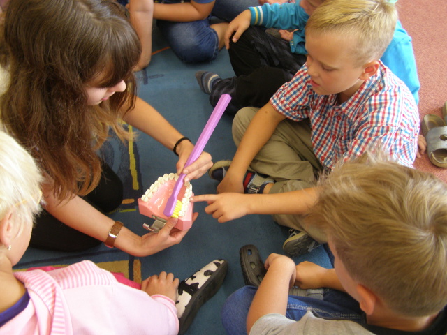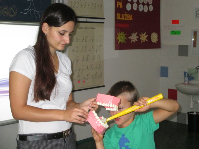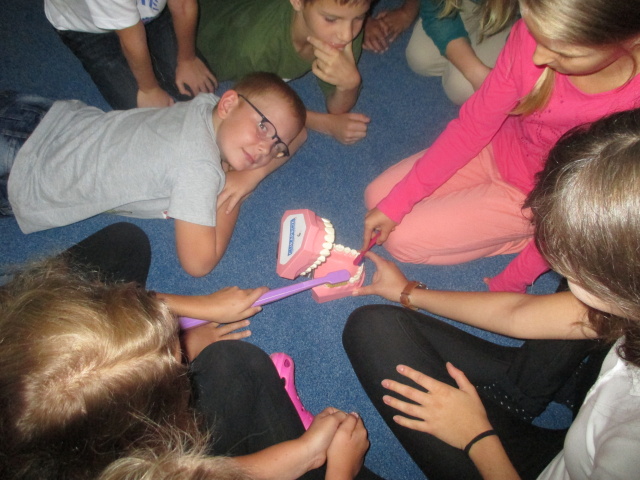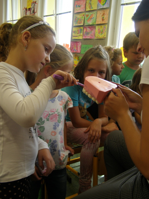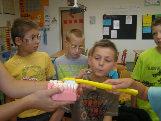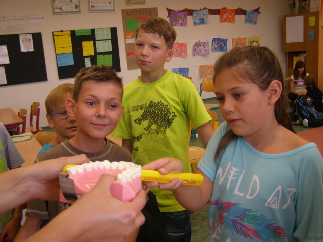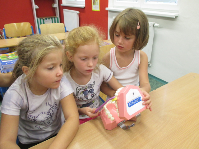 4. září 2015 si děti zopakovaly, z jakých částí se skládá zub a jak se mají o své zoubky starat. Správné čištění zubů si také vyzkoušely.