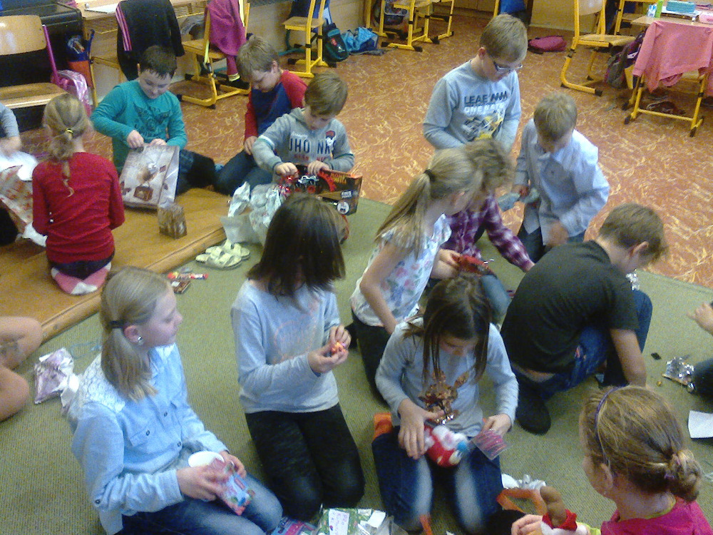 Na Vánoce se všichni moc těšíme a tak jsme si zkrátili čekání na Štědrý den nadělováním dárečků o dva dny dříve. I když byli všichni nedočkaví, co mají pod stromečkem, dokázali jsme si popovídat o vánočních zvycích u každého doma, o tom, na co se nejvíce těšíme a co jsme si přáli pod stromeček. Děvčata nás rozezpívala a kluci roztančili.Dárečky se všem moc líbily.