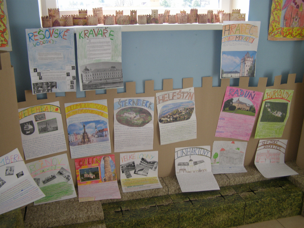 Ve 2. pololetí se ve Vlastivědě zaměřujeme na zeměpis české republiky. Z našeho, Olomouckého, Zlínského a Jihomoravského kraje jsme si vybrali více než 20 pozoruhodných míst - hrady, zámky, zříceniny apod. Podrobně jsme tyto památky zmapovali a prezentovali žákům 4. třídy ve společné vlastivědné hodině. Žáci ostatních tříd si je mohou prohlédnout na minivýstavce na školní chodbě.